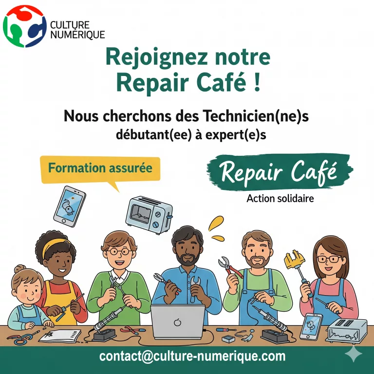 et aidez des personnes à redonner vie à leurs objets : grille-pain, ordinateur, vélo, machine à coudre…